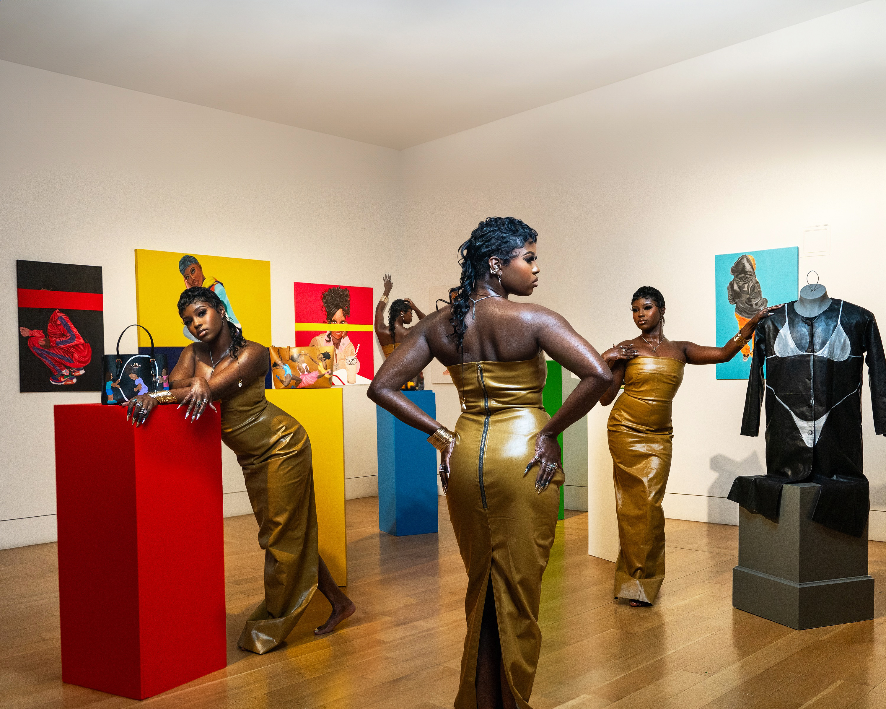 Tyra's practice boldly intersects fine art and fashion, drawing on personal, cultural, and stylistic influences to create work that lives beyond the canvas. Her MFA thesis explored how fine artists navigate the fashion world, highlighting the increasingly blurred boundaries between the two disciplines. This passion has led her to collaborate with musicians, designers, and entrepreneurs throughout the DMV area-offering creative direction, graphic design, and visual identity support.