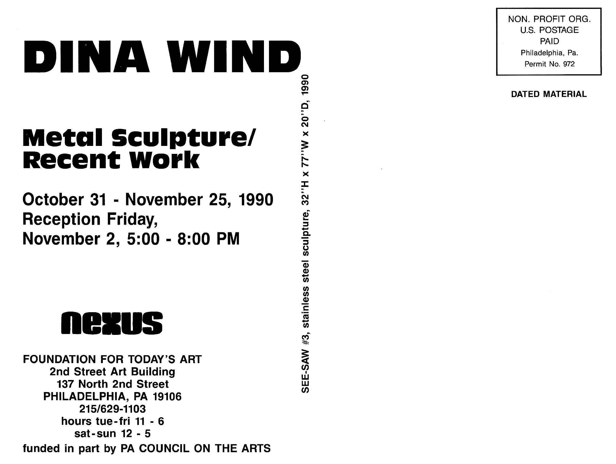 Dina Wind: Metal Sculpture/Recent Work: Nexus Gallery, Philadelphia