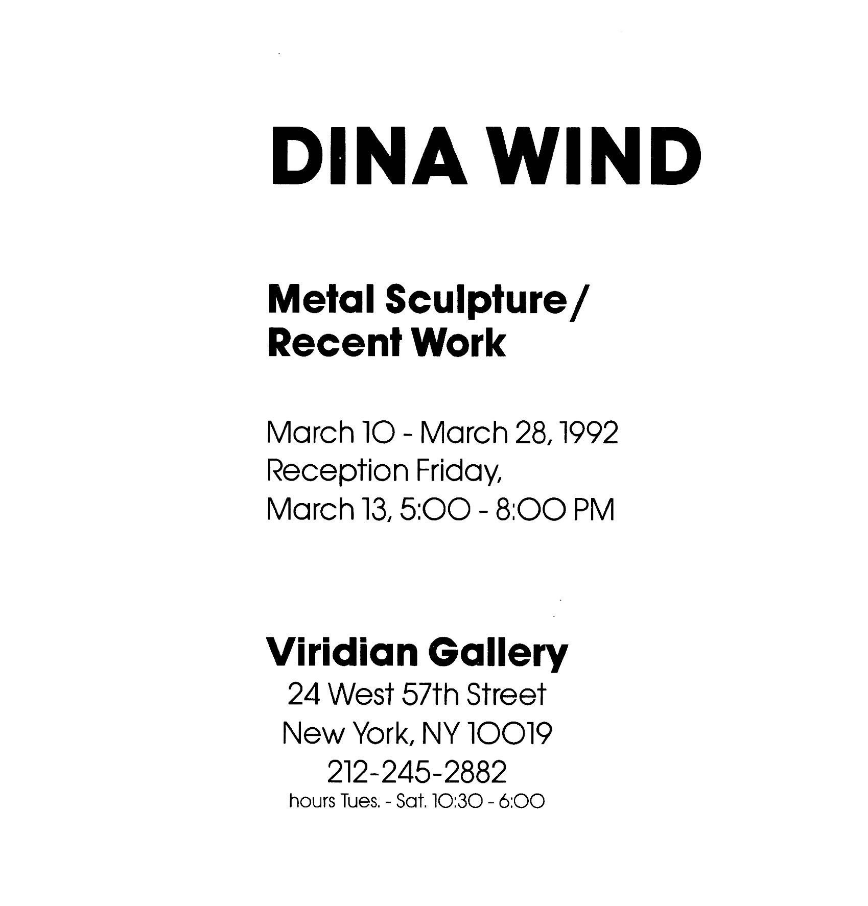 Dina Wind: Metal Sculpture/Recent Work: Veridian Gallery, New York