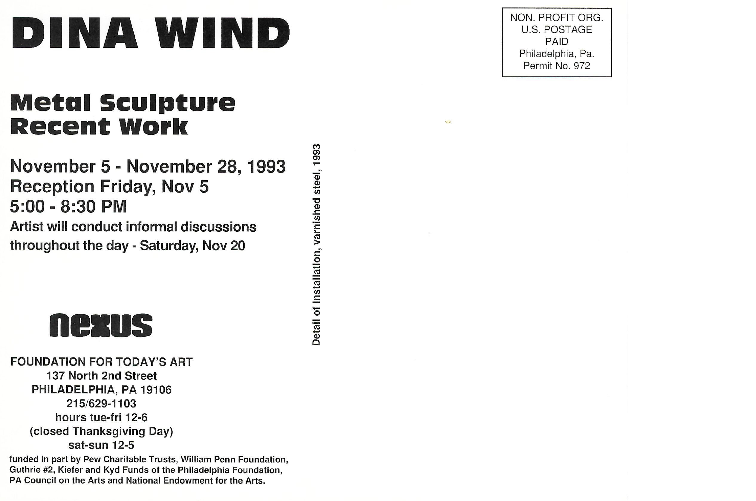 Dina Wind: Metal Sculpture/Recent Work: Nexus Gallery, Philadelphia