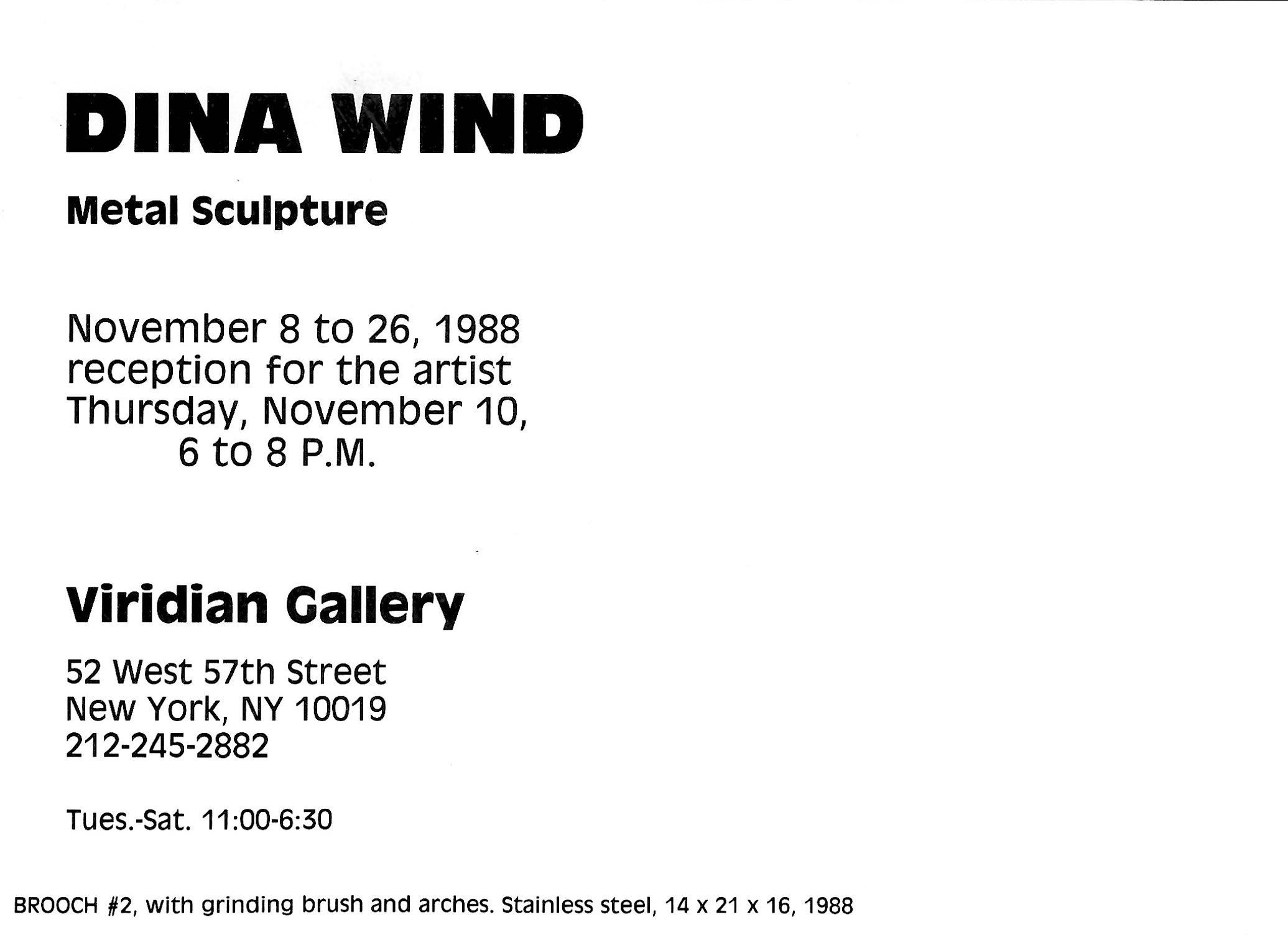Dina Wind: Metal Sculpture: Viridian Gallery, New York