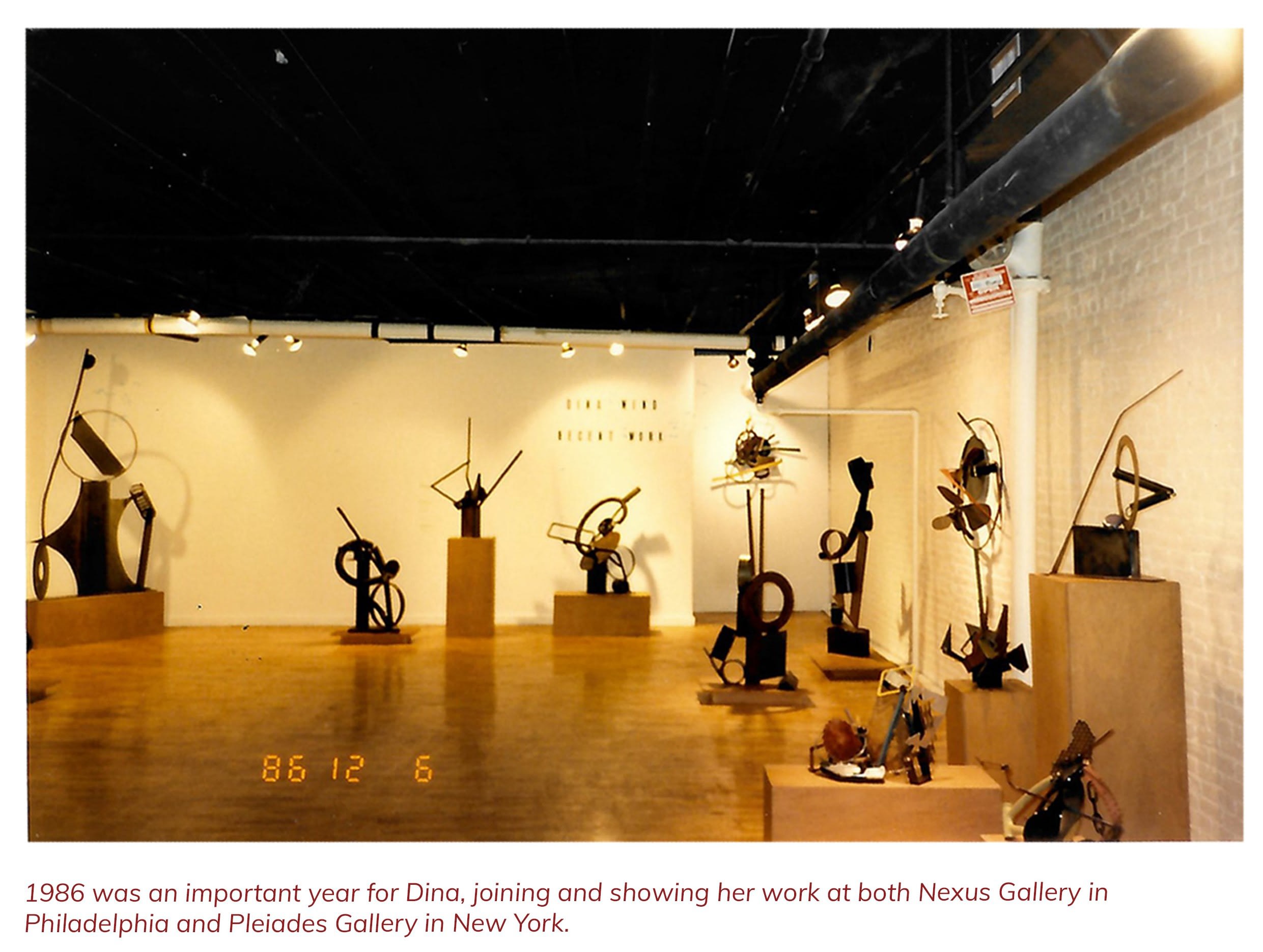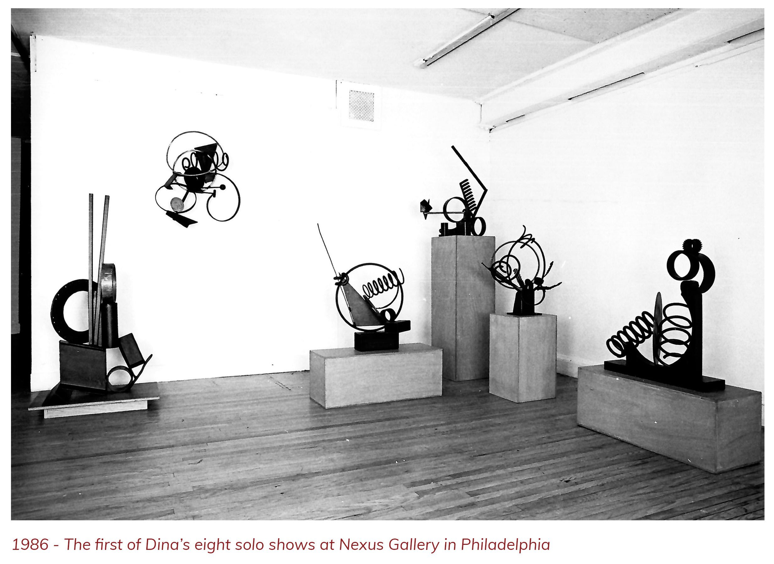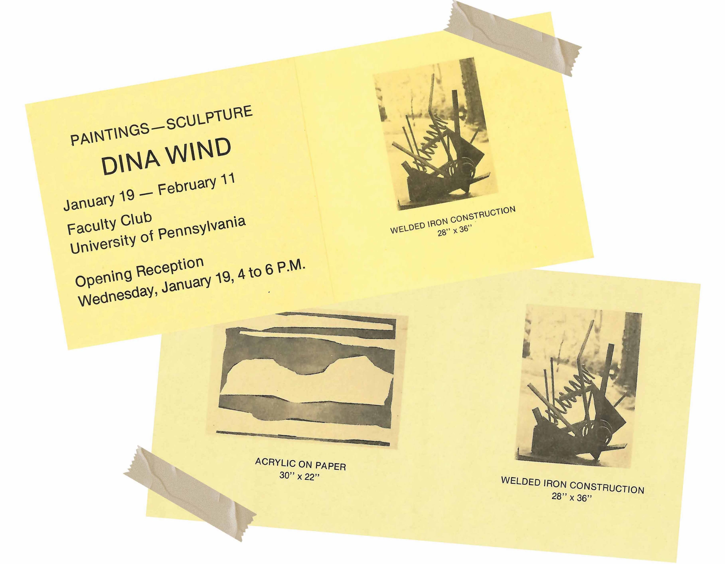 "They (Dina's works) are poetry in motion. Angels appear to float in space and interweave with spheres and twisted rods. There is an expressive thrust and spontaneity in movement, even though Ms. Wind has gone through a deliberate and skillful process to achieve these highly original works. They are rich in texture, versatile in composition, and achieve an asymetrical balance, like a perfectly tuned orchestra."