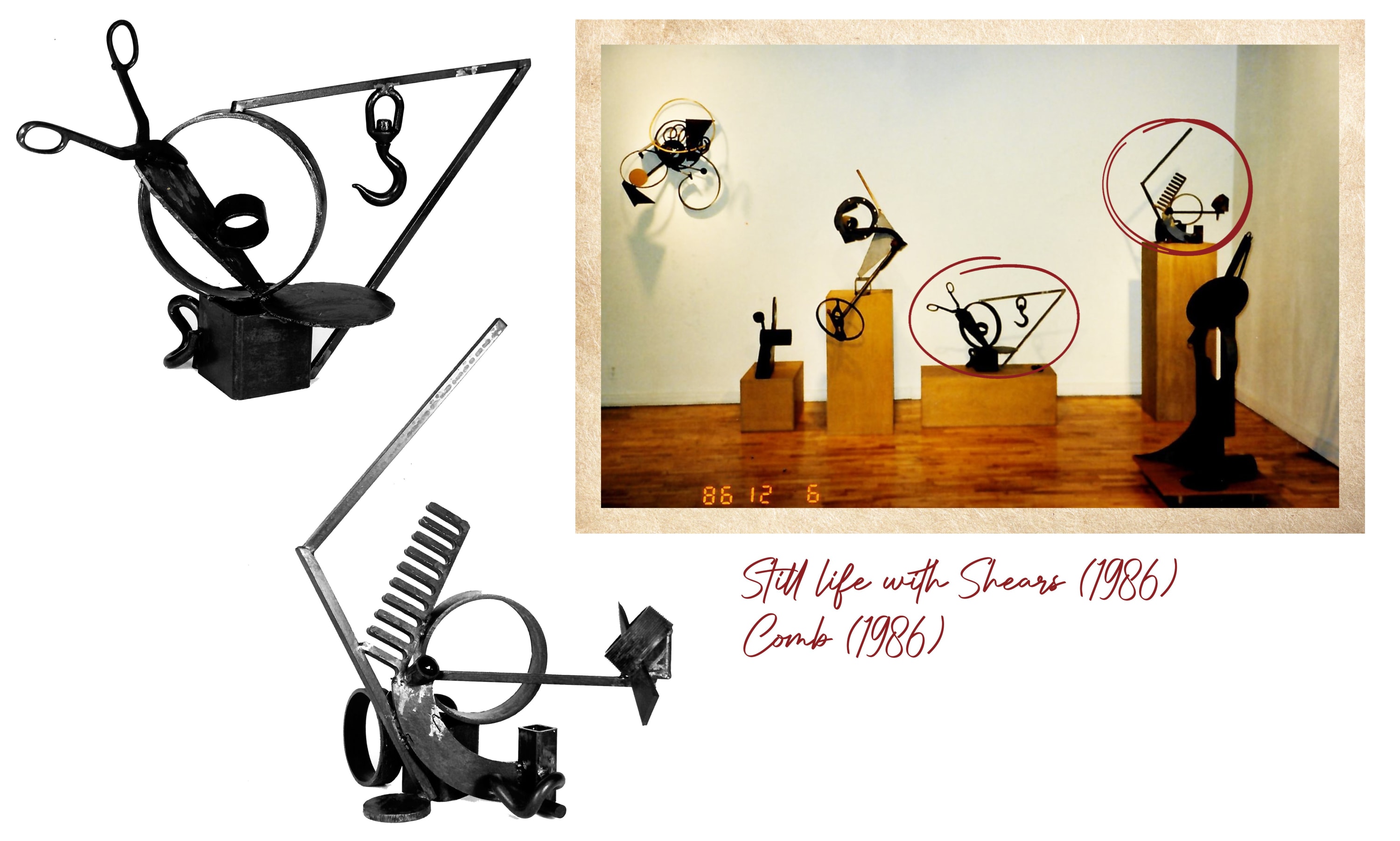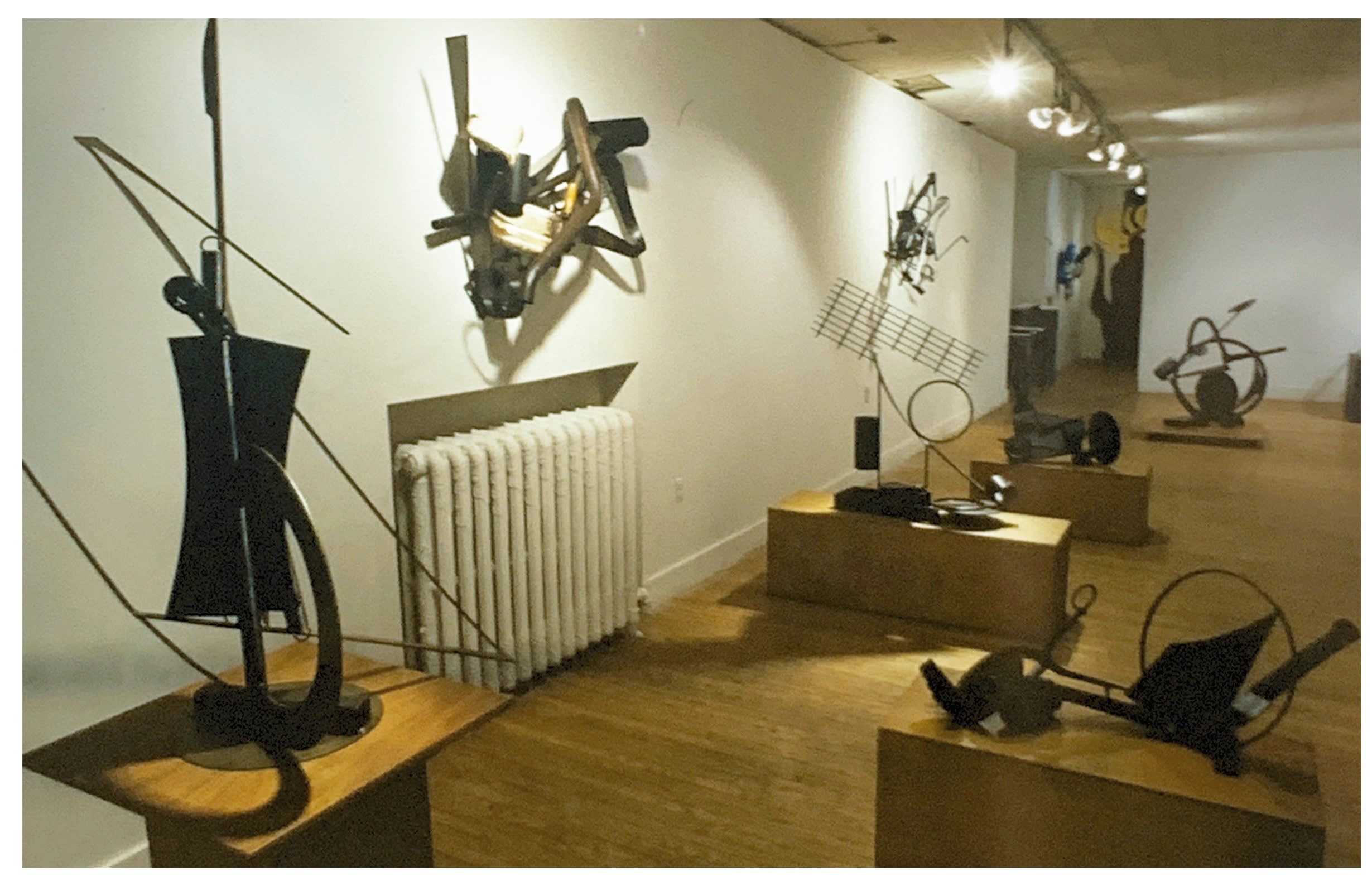 “Dina Wind is exhibiting welded sculptures assembled from pieces of scrap metal found in junkyards - industrial springs, sheet metal cutouts, even a propeller. This is vibrant work in which dislocations, ambiguities, and fusions are crucial elements.”